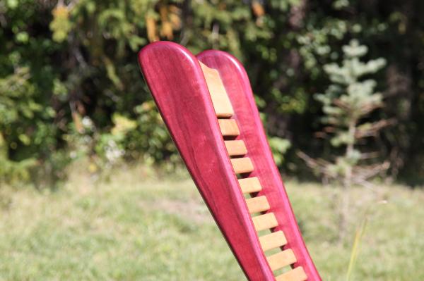 Maple and Purple Heart. All the Joints are mortise and tenon and it has four